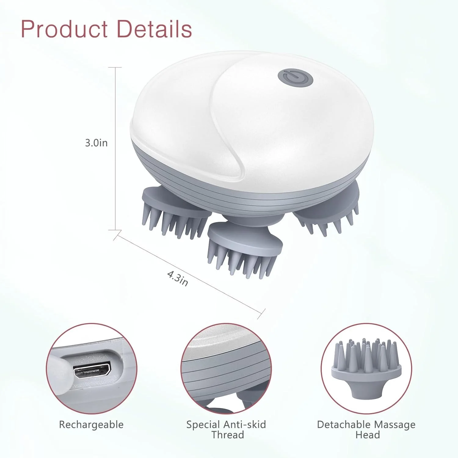 Enjoy a compact design, convenient USB charging, and a comfortable anti-skid coating with a detachable massage head for versatile use!